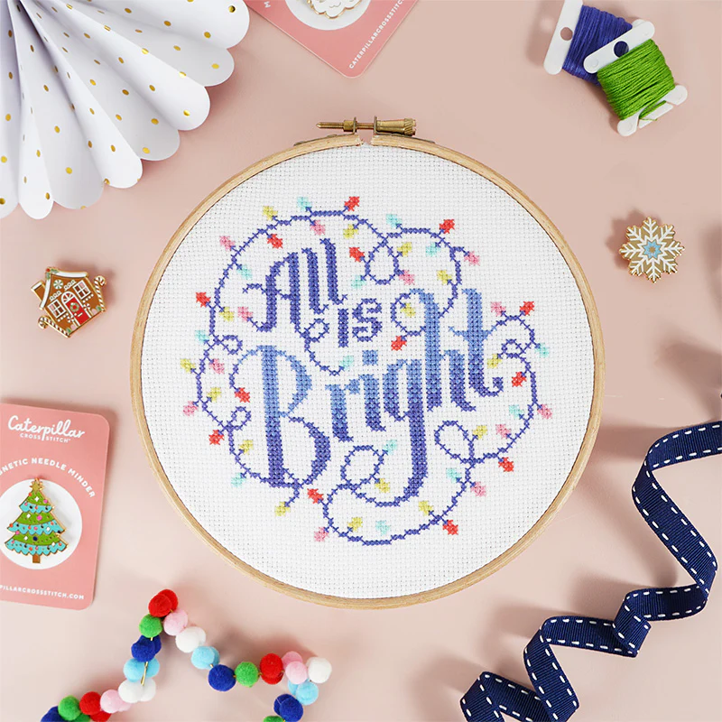 Magic is in the air! This Christmas lights typography cross stitch design will fill you with festive joy. Designed by Emma Congdon of Stitchrovia.