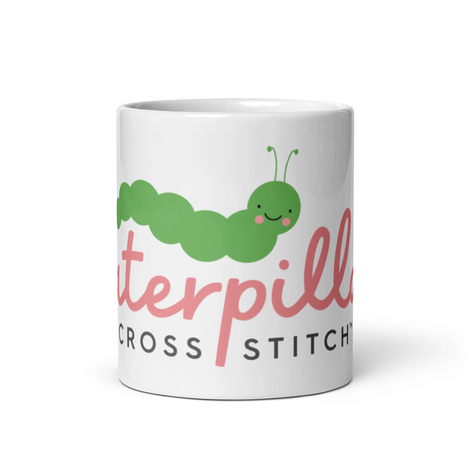 This white, glossy mug has a classic shape and comes with our cute caterpillar logo clearly printed in vivid colour around the mug. Made from a durable ceramic in the most popular size. Finished with the best quality printing, this mug is every cross stitcher's essential!